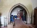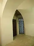 Proti hlavnímu vstupu se nachází nika. Je zde lomený gotický portál s tesaným profilem. Je podobný tomu, co se nachází na levé straně v místnosti vedlejší, která je situována příčně na hlavní prostoru kaple. V této místnosti je patrný rub kleneb sklepa.