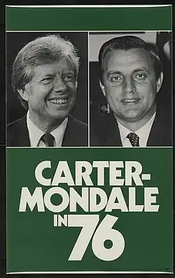 Dne 15. července 1976 si Carter vybral za svého kandidáta na viceprezidenta Waltera Mondaleho. Carter a Ford se utkali ve třech televizních debatách.