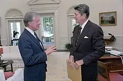 - ↑ Carter criticizes Reagan's gulf policy - UPI Archives. UPI [online]. [cit. 2025-01-06]. Dostupné online. (anglicky)
