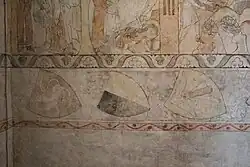 Hlavní vstupní síň s jedinečnými nástěnnými malbami představující Legendu sv. Jiří z 14. století