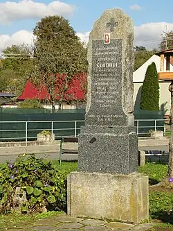 - Dne 11. listopadu 1954 byl před školou v Labutech Jindřichu Škodovi odhalen pomník za přítomnosti velkého množství lidí z okolí. Po dopoledních bohoslužbách se konala slavnost, při níž dcera umučeného Dagmar Škodová odhalila pomník, pořízený ze sbírek občanů.[8]