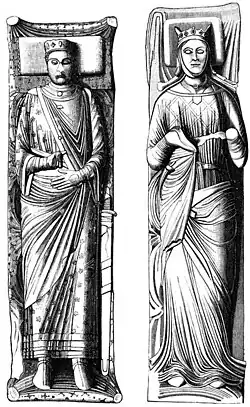 - Eleonora a Jindřich II. na hlavici sloupu v kostele Notre-Dame-du-Bourg v akvitánském Langonu