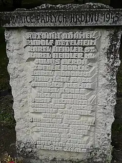 - ↑ Pamětní desky Obětem 1. a 2. světové války [online]. Spolek pro vojenská pietní místa, o.s. (vets.cz) [cit. 2014-06-02]. Dostupné online.