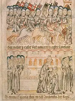 | „ | …aby se pak obrátila příčina starého sporu ve svazek jednoty a míru, usmyslili si starší lidu jak vévodství, tak hrabství uzavříti mezi dědici posvátné spojení řádného manželství… | “ |