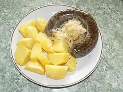 - Moravské jitrnice – maso z vařené hlavy, vařené kůže, syrová játra, vývar, koření.