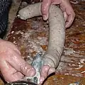 Obrázky, zvuky či videa k tématu jitrnice na Wikimedia Commons - Plnění jitrnic – fotogalerie s klasickým postupem plnění jitrnic
