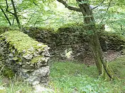 Hrad typově patří mezi hrady s obvodovou zástavbou. Jeho obdélné staveniště odděloval od zbytku ostrožny mohutný šíjový příkop. Za ním se nacházelo první nádvoří, v jehož čele stál nad příkopem bergfrit. Další zástavba nádvoří se nedochovala, ale nějaké stavby pravděpodobně stály podél obvodových hradeb. Hradní jádro bylo ze tří stran obestavěné palácovými křídly. Čtvrtá strana, která přiléhala k prvnímu nádvoří, byla chráněna hradbou. V jednom z opěráků lze rozeznat zbytek záchodové šachty.[2]