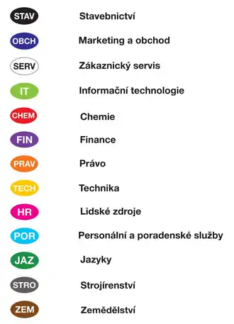 JobChallenge využívá barevného rozlišení firem podle oborů, kterým se věnují. Každá firma si může vybrat 3 obory, do nichž chce být zařazena. Má barevné možnosti uvedeny na obrázku.[11]