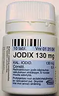 Jodidové pilulky proti ozářeníJodid draselný je také důležitý v ochraně proti radioaktivnímu záření. Ve formě tablet (jodové tablety) se podává preventivně v případě havárií v jaderných zařízeních. Jím způsobená jodová blokáda vede ke snížení absorpce nebezpečného radioaktivního jodu do štítné žlázy.