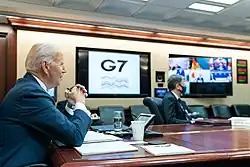 Dne 19. února se poprvé ve funkci prezidenta zúčastnil summitu G7.[76]