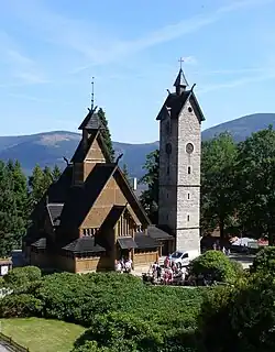 Dřevěný kostel z osady Vang v oblasti Valdres chtěli místní obyvatelé rozprodat na palivové dříví, ale Dahlovi se ho podařilo zachránit a dnes ho najdeme ve městě Karpacz na polské straně Krkonoš. Kostel byl v roce 1841 rozebrán, jednotlivé díly pečlivě očíslovány a převezeny na jih. Ve své nové lokalitě v Krkonoších byly znovu poskládány v roce 1844. Dahlův dřevěný kostel se zde dnes stal velkou turistickou atrakcí, v některých jazycích bývá označován Vang, v jiných Wang.