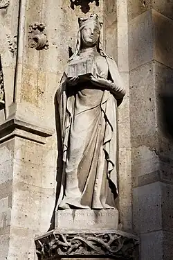 Socha sv. Johany Francouzské na průčelí kostela Saint-Germain-l'Auxerrois v Paříži, 16. století
