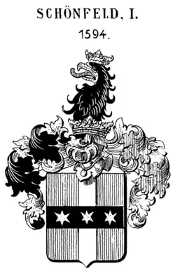Johann Ferdinand odvozoval svůj původ od Jeronýma (srv. Schönfeldové), kterého císař Rudolf II. v roce 1594 povýšil do šlechtického stavu. Roku 1787 mu císař Josef II. toto šlechtictví („staré šlechtictví“) obnovil. Johann Ferdinand pro sebe a potomky získal roku 1814 rytířství.