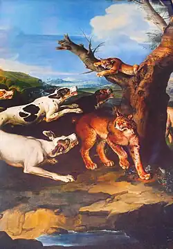 - ↑ Ourodová-Hronková L. Knížecím malířem v Třeboni: obrazy štvanic pro zámek Ohrada. In: Johann Georg de Hamilton (1672–1737). Malíř zvířat a lidí. Vydal Národní památkový ústav, 2015, České Budějovice. Str. 82-96.