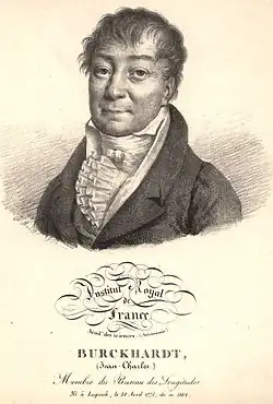 - ↑ a b Burckhardt, Johann Karl [Jean‐Charles] [online]. SpringerReference [cit. 2014-06-28]. Dostupné online. (anglicky)