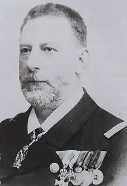 | Hodnost | admirál (1901), viceadmirál (1898), komodor (1889), kontradmirál (1889), kapitán řadové lodi (1884), fregatní kapitán (1879), korvetní kapitán (1874) |