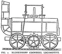 Blenkinsop byl ředitelem uhelných dolů u Leedsu, které v době napoleonských válek trápil nedostatek koní pro dopravu uhlí. Rozhodl se tedy vyzkoušet parní lokomotivu a protože věděl, že tehdejší litinové kolejnice pod těžkými stoji praskají, zkonstruoval velmi lehký stroj, který by ovšem trpěl malou adhezí. Proto se rozhodl pro přenos síly ozubeným kolem na ozubený hřeben vedle kolejnice. Ozubené kolo sloužilo i pro převedení přímého pohybu pístu prostřednictvím táhla a západky na otáčivý pohyb tohoto kola.[1] V roce 1811 si dal patentovat ozubnicovou lokomotivu a objednal výrobu čtyř lokomotiv, které se jmenovaly Prince Regent, Salamanca, Lord Wellington a Marquis Wellington. V červnu 1812 uvedl železnici do provozu s takovým úspěchem, že byla v provozu až do roku 1834. Blenkinsopovy lokomotivy nevážily ani 5 tun a přesto utáhly rychlostí 6-7 km/hod až 38 uhelných vozíků o celkové váze asi 140 tun. Nahradily přes 50 koní a 200 lidí a byly to první obchodně úspěšné parní lokomotivy.