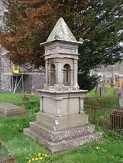 Jeho náhrobek na hřbitově u kostela sv. Dingata v Llandovery je památkově chráněn.[4]