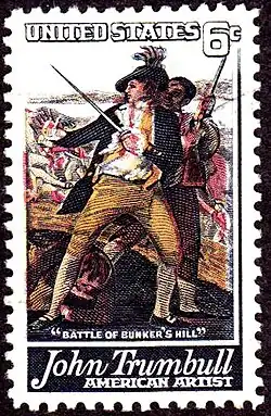- ↑ Bitva o Bunker Hill ze 17. června 1775 byla součástí obléhání Bostonu. Bitva je pojmenována po kopci Bunker Hill v Charlestownu ve státě Massachusetts. Bunker Hill byl původní cíl jak koloniálních, tak britských jednotek, ačkoli většina boje proběhla na přilehlém kopci, který se později stal známým jako Breed's Hill. Britové sice v bitvě po velkých ztrátách zvítězili, ale jejich sebevědomím otřáslo, že nezkušené milice se dokázaly v bitvě postavit vycvičeným vojenským jednotkám. Amerických obětí bylo relativně mnohem méně než britských, i když mezi jejich mrtvé patřil generál Joseph Warren a major Andrew McClary, poslední oběti bitvy. V tomto článku byl použit překlad textu z článku Battle of Bunker Hill na anglické Wikipedii.