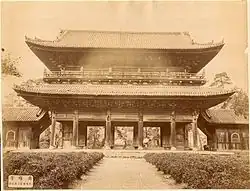 - ↑ Název je vytištěn na obalu japonskými znaky, latinkou přepsané je to: Kwan ko dzu setsu a ve francouzštině: Notice historique et descriptive sur les arts et industries japonais, première partie, château. This was one of a ten-volume work: five volumes in Japanese with plates, and five in French translation. Yokoe, 'Part 3-3. Yokoyama Matsusaburo (1838-1884)', 182.