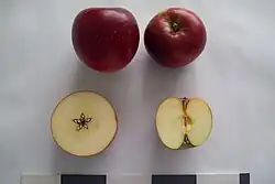 Plod je kulovitý, střední až velký (130-192g). Slupka hladká, slabě mastná, žlutozelené zbarvení je překryto červenou barvou. Dužnina je nažloutlá se sladce navinulou chutí, výborná.[1]