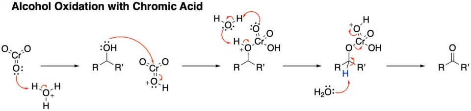 - CrO3(OH)− + RCH2OH → CrO3(OCH2R)− + H2O