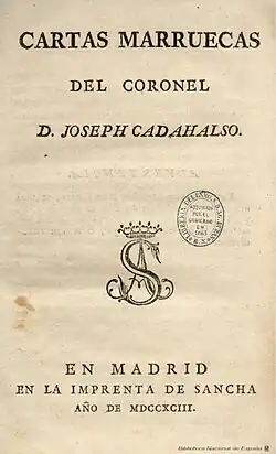 - Cartas marruecas (časopisecky 1789, knižně 1793, Marocké listy), po Truchlivých nocích další autorovo vrcholné dílo, v nichž po vzoru Perských listů Charlese Louise Montesquiea analyzuje příčiny úpadku Španělska a omyly v jeho koloniální politice.[5]