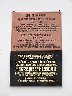 V obci Vrcovice na domě číslo popisné 17 [p 1] se nachází pamětní deska věnovaná Josefu Hessounovi. Na desce je následující text: [3]