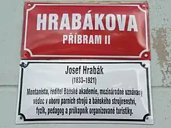- ↑ Pribram.cz: Názvy ulic v Příbrami vysvětlí doplňkové tabulky (12/2020)