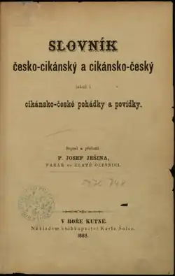 - Slovník česko-cikánský a cikánsko-český jakož i cikánsko-české pohádky a povídky (1889)