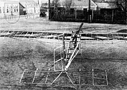 Základními „vztlačnými“ a současně nejdelšími díly „větroplašného“ letadla byla dvojice identických křídel (levé, pravé, každé asi 5 metrů dlouhé), která byla připevněna k přední části stroje. Každé z křídel bylo zdola podepřeno šikmou vzpěrou opřenou o nohu postranní stabilizační lyže v přední části stroje. Každé křídlo bylo sestaveno ze dvou nosníků slepených pravděpodobně z dřevěných podélníků a z překližky. S roztečí asi 25 cm byla na každém křídle upevněna žebra v celkovém počtu 18 kusů: šest hlavních žeber zhotovených z odlehčené překližky + dvanáct žeber vyrobených z loupaných vrbových prutů. Náběžná hrana křídla byla nejspíše zesílena dýhou, zatímco zbytek křídla byl (stejně jako ocasní plochy, výškové a směrové kormidlo) potažen plátnem.[3]