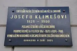 - ↑ a b c Domů › Osobnosti Chrudimska › KLIMEŠ Josef [online]. Městská knihovna v Chrudimi [cit. 2013-08-24]. Dostupné online.