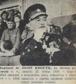 - ↑ KNECHTL, Bohumír. Legionářský hrdina div. gen. v.v. Josef Kroutil zemřel. Pozor. 23.1.1936, roč. XLIII, čís. 22, s. 3. Dostupné online.