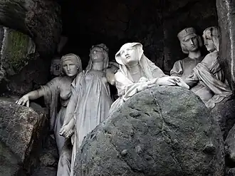 - 1915 Socha truchlící ženy se závojem pro hrobku Leopolda Katze, Olšanské hřbitovy