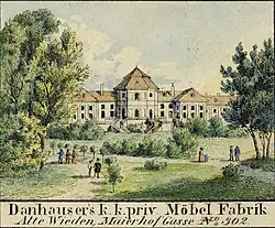 V roce 1804 také založil továrnu na nábytek v Černínském paláci ve Vídni. Již v roce 1808 měl přes 150 zaměstnanců a vlastnil sklad v Budapešti.[4] Vyráběl se zde nejen nábytek ale i např. tapety, čalounění, závěsy a jiné bytové doplňky. Vše bylo vyrobeno podle Danhauserových návrhů. Těch se do dnešní doby dochovalo přes 2500 nejrozmanitějších kusů. Mezi nimi jsou návrhy skříní, knihoven, komod, sekretářů, nočních stolků, pohovek, plivátek, křesel, taburetů, podnožek, stojanů na dýmky, stojanů na housle, postelí, bidetů, lustrů a mnohé další. Tyto kresby jsou dnes shromážděny v Muzeu užitých umění ve Vídni.[4]