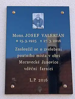 - ↑ a b Zemřel Mons. Josef Valerián [online]. biskupstvi.cz [cit. 2016-03-29]. Dostupné online.