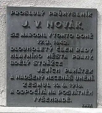 - ↑ hrob průmyslníka Josefa Vincence Nováka na Vyšehradském hřbitově v Praze. 212.47.2.130 [online]. [cit. 2019-04-02]. Dostupné v archivu pořízeném z originálu dne 2019-04-02.
