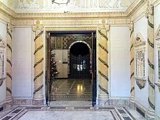 - Interiér městských lázní Kaiser Friedrich Therme ve Wiesbadenu, obklady majolika a mramor, 1911-1912