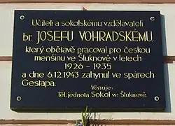 - ↑ -OU-. Hrob inspektora Vohradského nalezen. Svobodný směr. 1946-03-23, roč. 2, čís. 70, s. 3.