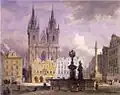 - Ojedinělá je městská veduta Staroměstského náměstí s Krocínovou kašnou (1864).