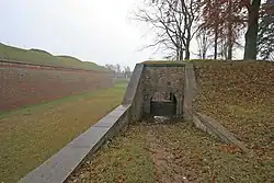 23. SLAVÍK, Jiří, a kol. Bastionové pevnosti. Průzkumy a opravy. 1. vyd. 1. vydání, Ústí nad Labem: NPÚ, CPS, KVH – Pevnost Terezín a VHÚ, 2014. S. 36.