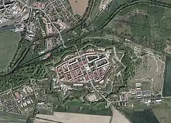 Ortofotomapa Josefova (2022) se zřetelným systémem opevnění