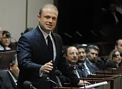 Po parlamentních volbách konaných v březnu 2013, v nichž se poprvé ucházel o důvěru voličů při volbě do nejvyššího zastupitelského orgánu Malty,[1] sestavil jako lídr vítězné strany novou vládu a 11. března téhož roku jej prezident republiky George Abela jmenoval předsedou vlády.
