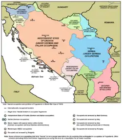 V Jugoslávii si druhá světová válka vyžádala přes 1 milion obětí. V Chorvatsku ustašovský režim zahájil v roce 1941 násilnou asimilační kampaň a genocidu srbského obyvatelstva, při které zahynulo několik set tisíc Srbů.[7]