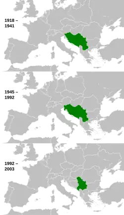 1. Později v roce 2003 přejmenována na Srbsko a Černou Horu.