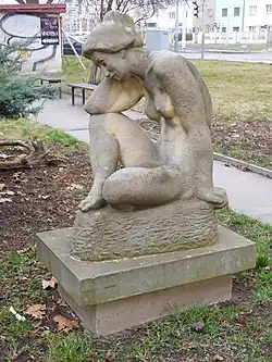 - Schoulená dívka – pískovec, 1985, parčík v Davídkově ulici, Praha 8 Libeň