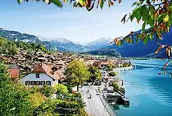 - Interlaken (567 m n. m.) leží mezi Thunským jezerem na západě a Brienzským jezerem na východě. Vzhledem ke své poloze je oblíbeným východiskem turistů pro návštěvu celé oblasti Jungfrau.