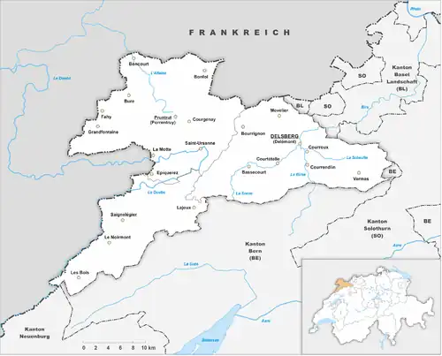 Podrobnější informace naleznete v článku Seznam obcí v kantonu Jura.