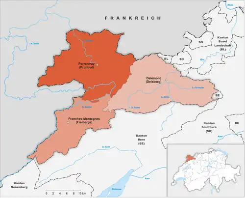 Mapa okresů kantonu Jura