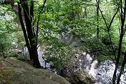 Justýnka, když doběhla na kraj skály vysoko nad řekou Rokytnou, nešťastně se zřítila do propasti. Když vojákovi, který neznal krajinu, děvče zmizelo před očima, napadlo mu, že před ním utíká po stráni, pobídl svého koně k prudšímu letu a zřítil se i on do propasti.[2] |